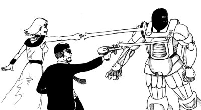 The robot, Cyberman JX01, has a super-ray-laser-resistant body!