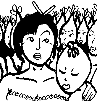 The Doctor is surrounded by the female aliens. This is what