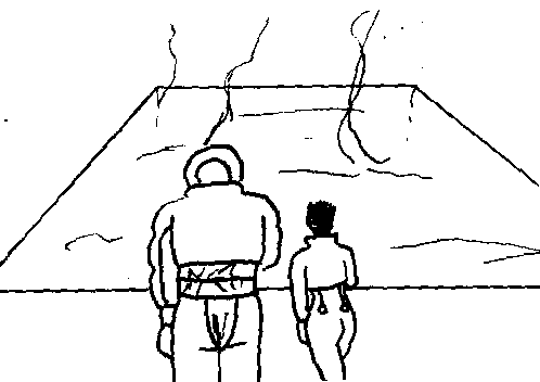 The team arrives at the entrance to the hot springs. The power