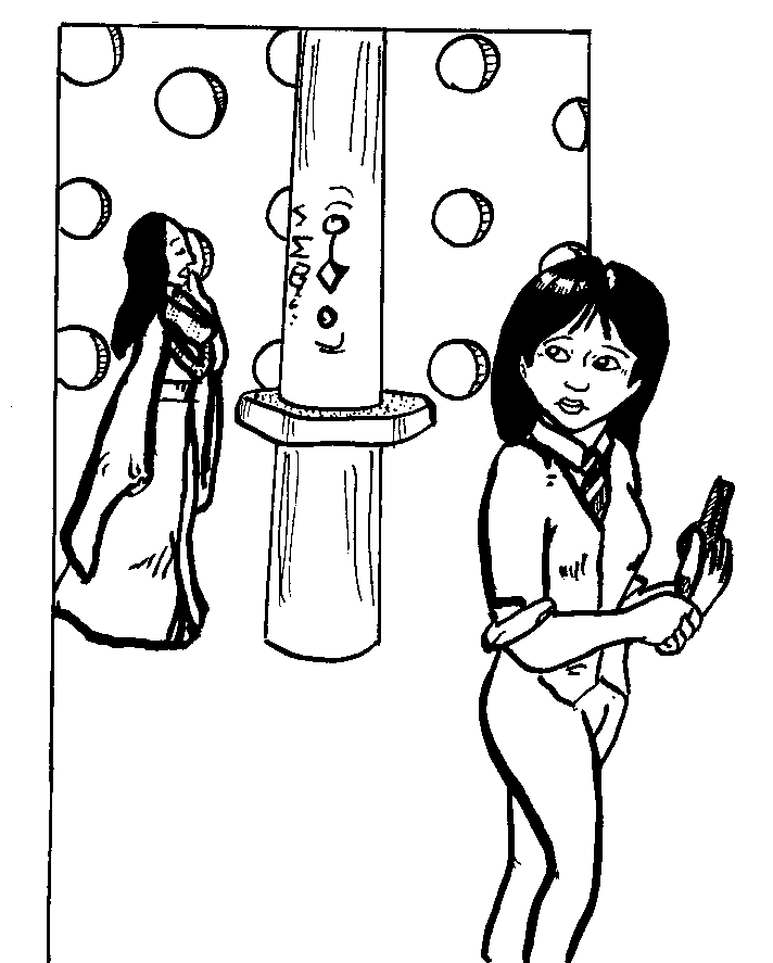 Now split up, Sarah Jane is hypnotised by a strange