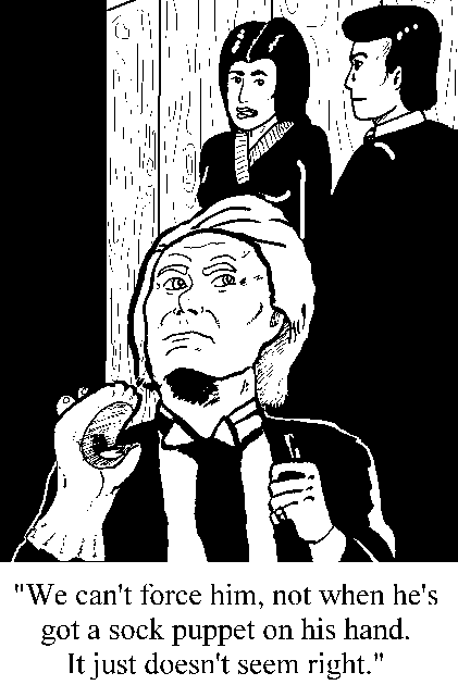 The old weirdo picked up a sock puppet, placed it on his hand, and