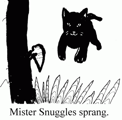 but it was too late. Mister Snuggles sprang.
